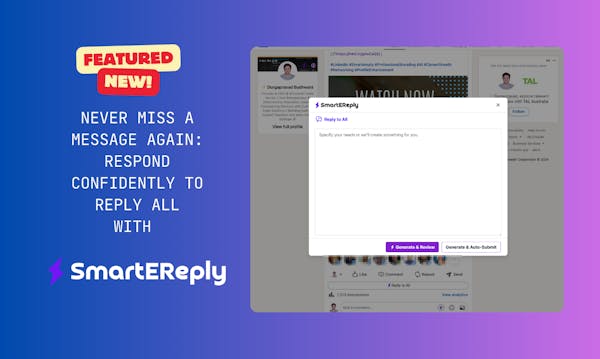 Enhance LinkedIn networking with SmartEReply, an AI browser extension for Chrome, Firefox, and Edge. Automate engaging posts, personalize responses, and boost profile visibility. Send tailored invites and connect globally with multilingual support.