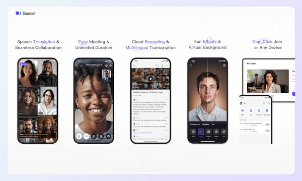 Teameet is an AI-powered video meeting platform, now offering the new feature called Speech Translation, which interprets meeting participants' speeches in real-time, preserving their tone, pitch, and emotion for seamless cross-language communication.