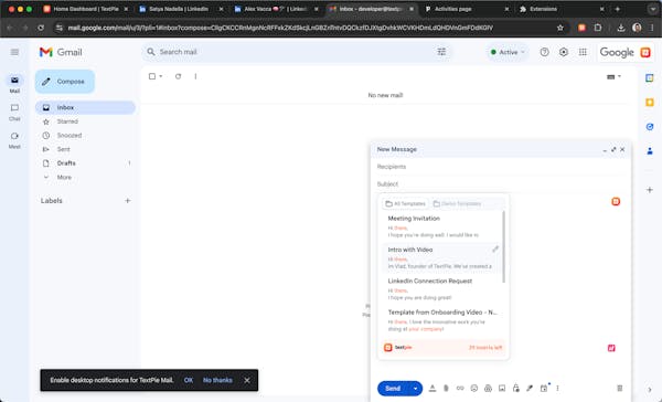 Right now, TextPie is only available as a Chrome extension, but we’re working on Mac and Windows versions, so just stay tuned! 😊Awesome tool! Do you also have a version for companies where I can share templates with my colleagues?@adiatlov We're working on a big feature for teams right now - it's going to be something very cool soon! But already today every team can come and use the product for free, no matter what size they are. Whether it's a sales team or a recruiting team or a suport team or a communication team in general.As a salesperson, I feel that this tool is handy for quicker and proper outreach (without any first name mistakes). I love that it proposes various templates, sounds like the brightest minds have already shared what's working for them with other salespeople.@what_if_dasha Thanks so much! 😊 We wanted to make sure those little details, like first-name mistakes, are a thing of the past, and the templates are there to help save time while staying on point.