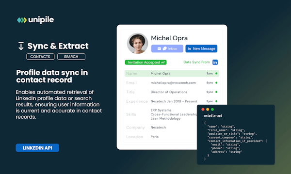 - Data Enrichment: Sync profiles, automate data retrieval. Optimize your users' LinkedIn workflows!
