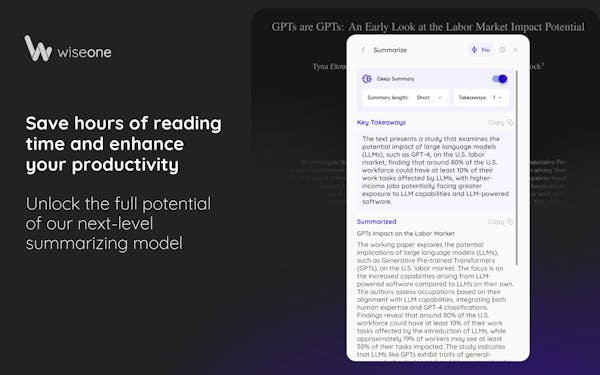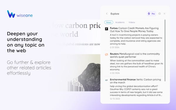 Wiseone Pro is your All-in-one AI tool to enhance web searching & boost reading productivity. With Wiseone Pro, you can:
